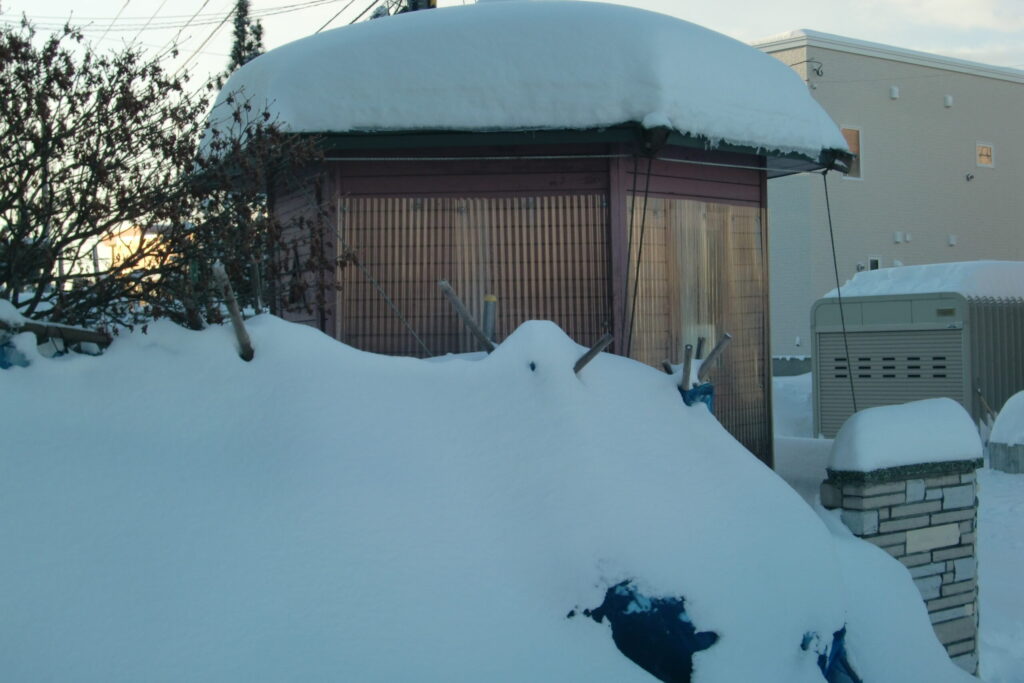 この時期、焙煎体験小屋は雪帽子をかぶり、春の訪れを待ちます。